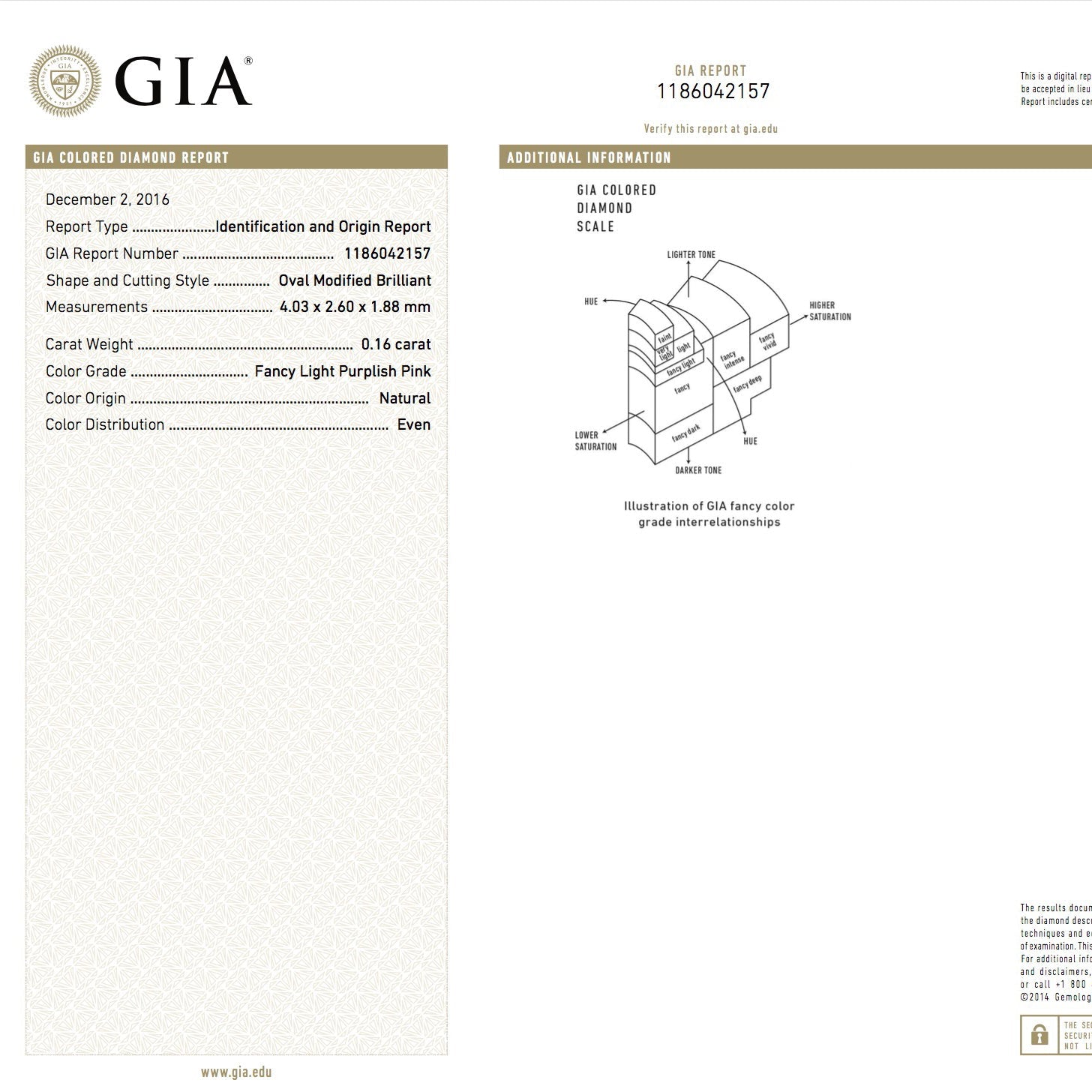 Fancy Light Purplish Pink 0.16 ct.